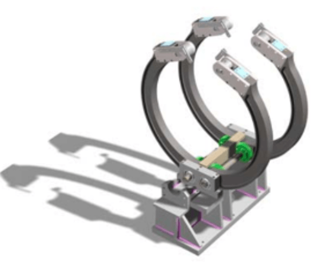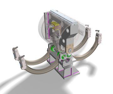 The Seam Lock Automation Machine is meant for high-volume manufacturing of pre-painted steel drums for laundry air dryers. It is adaptable and can manufacture three different sizes of drums. Modeled by Bluming, in joint efforts with Mechanical Designer David Watson and Project Co-Ordinator Boris Bulatovic from Canadian Automation International Inc.