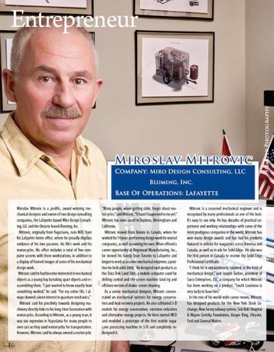 Miroslav Mitrovic is a prolific, award-winning mechanical designer and owner of two design consulting companies, the Lafayette-based Miro Design Consulting, LLC and the Ontario-based Bluming, Inc.
